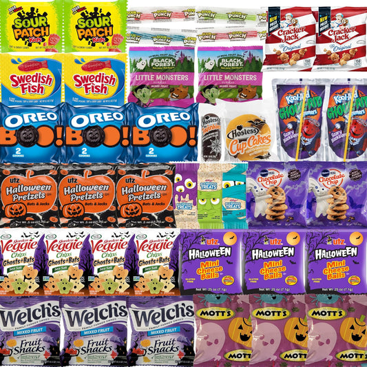Halloween Care Package Gift (40CT) Snacks Box Basket for Kids Children Adults with Cookies, Chips and Candy