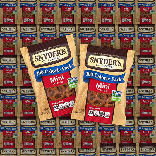 Mini Pretzels by Snyders, 100 Calorie Individual Packs, .9 oz. by Bussin Boxes (0.9 Ounce, Pack of 30)