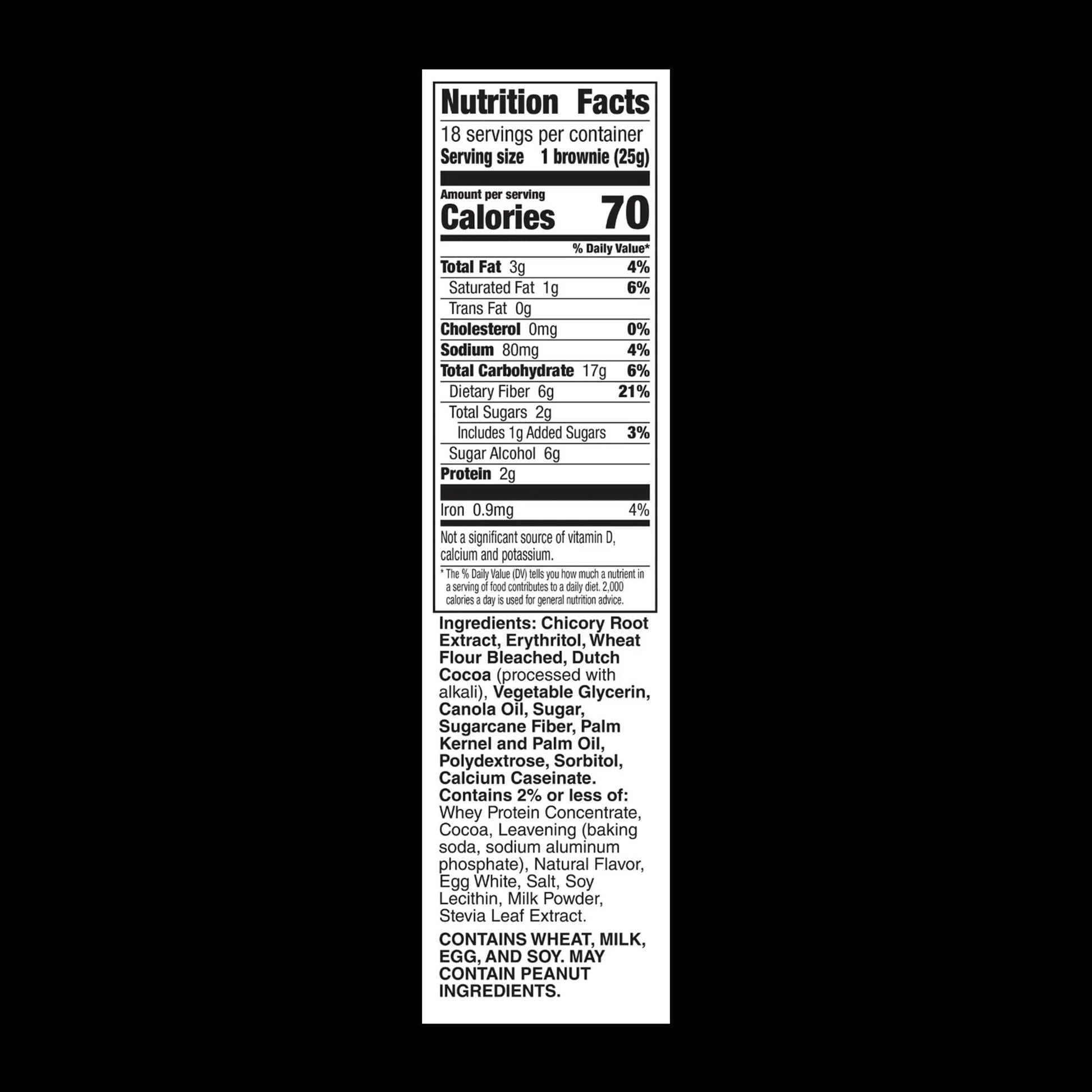 Fiber One brownies are the perfect sweet treat for an on-the-go snack. Each 0.89-oz bar has only 70 calories but is packed with 5g of fiber to keep you feeling full. That's 20% of your daily fiber needs in every serving. Best of all, these brownies satisfy your chocolate craving without any artificial flavors, colors or sweetenersâjust real brownie flavor. Whether you need an energy boost between classes or a pick-me-up after work, Fiber One brownies are a healthy and delicious option. At only 70 calories per bar, you can enjoy one of these fiber-filled brownies without guilt. The 28-count box makes them easy to grab and go so you're never without a satisfying sweet snack.